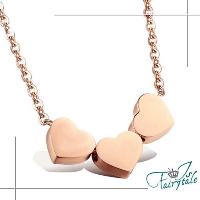 商品訊息描述: 將三顆心串成鍊飾,迷人簡約的愛心展現優雅時尚,外層鋼鍍玫瑰金展現亮麗女性態度,時尚高貴的鋼製飾品,以完美的切割技術打造外型,使用鈦鋼優質打造耐強酸強鹼、不變色、不過敏,材質堅固光亮永保光澤,一流打造更能展現獨特品味,最適合送禮及長久佩戴!